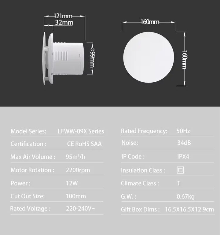 2023 230V Duct 4" 100MM Timer Humidistat Smart Shower Toilet