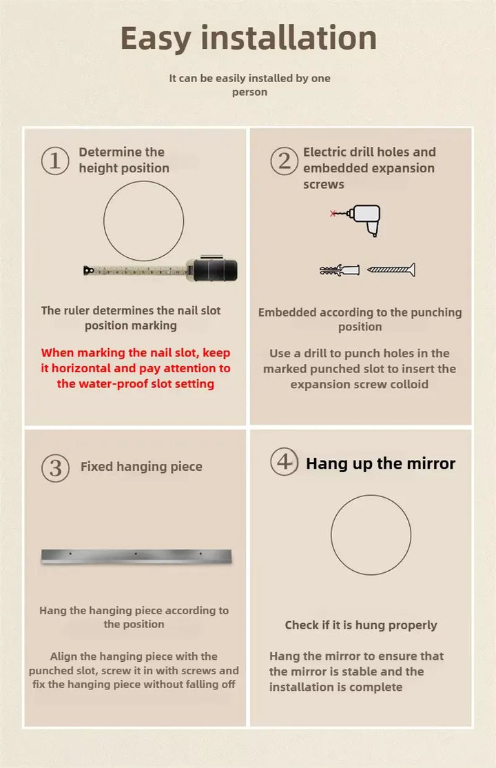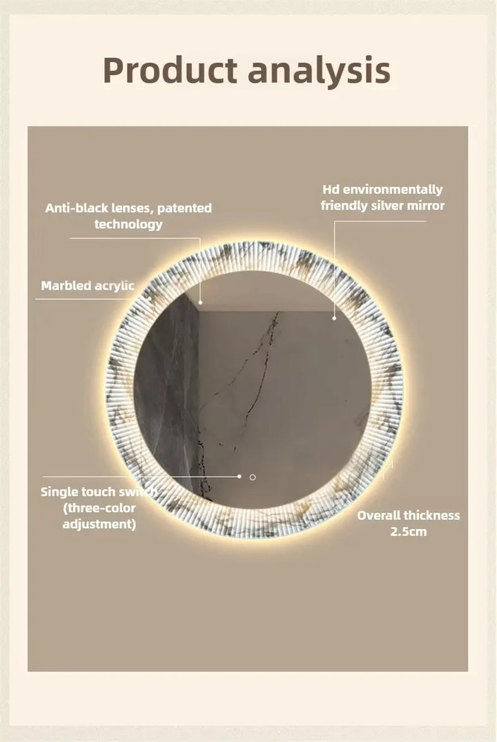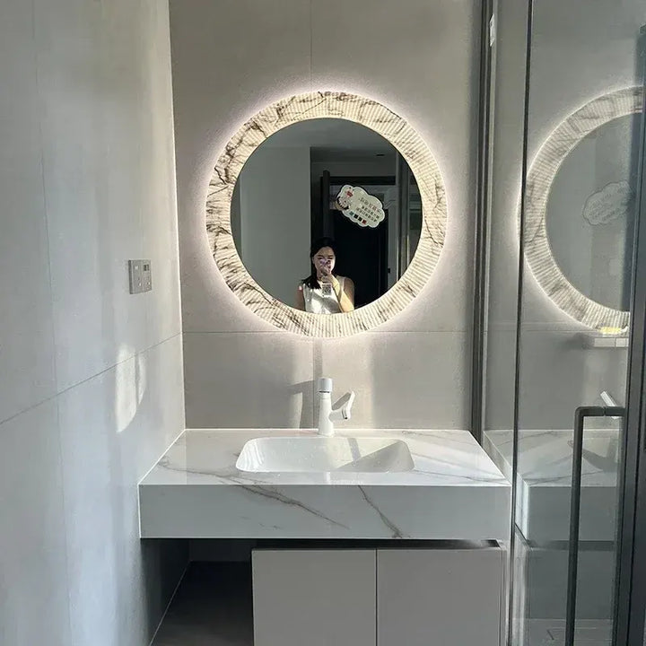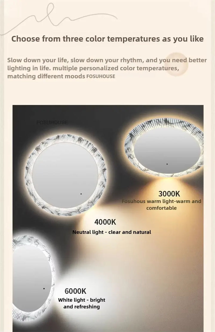 Light Luxury Creative Round Smart Bath Mirrors with LED Light