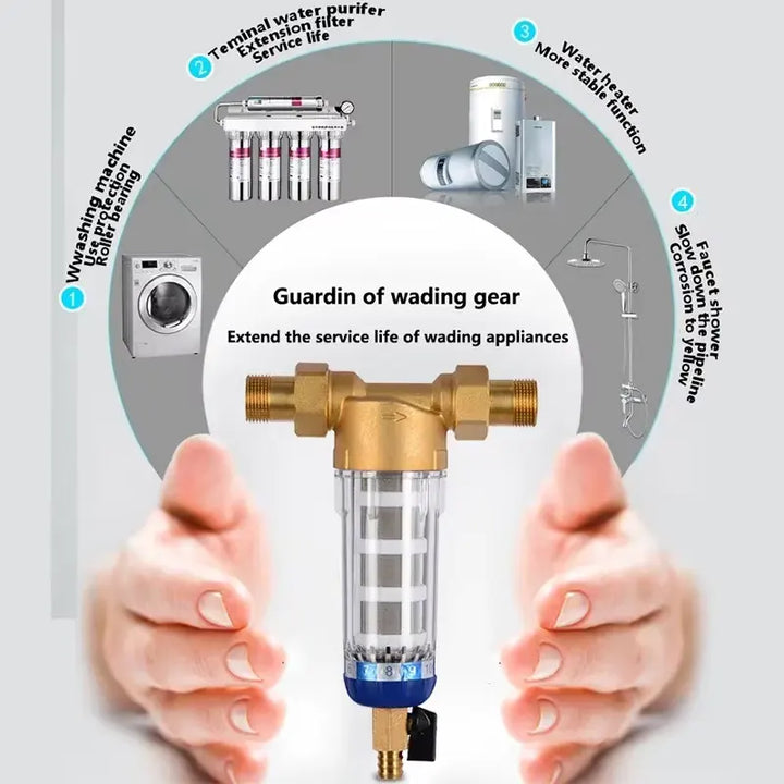 Protect your household plumbing, kitchen, and bathroom equipment from particulate impurities in municipal water. These impurities can block water taps, shower nozzles, water heaters, washing machines, RO water purifiers, and other water-related equipment.