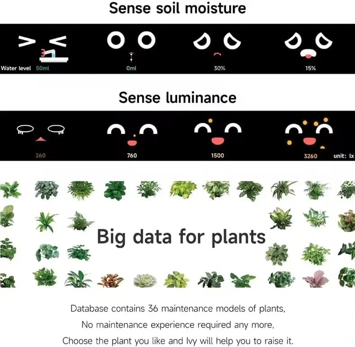 Intelligent water tank technology: Continuous water level monitoring function allows users to track the plant's water supply in real-time.