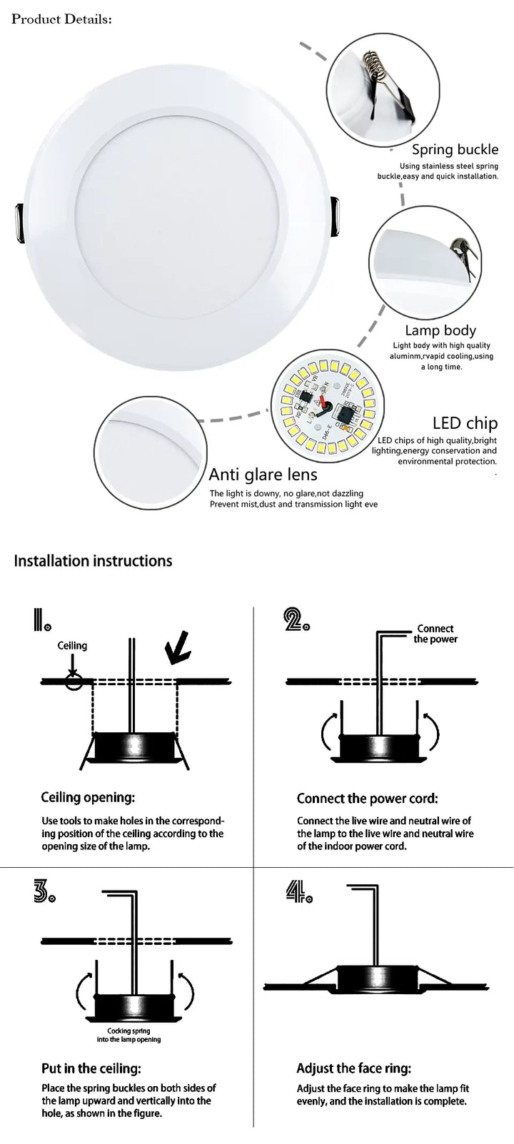 LED Downlight 5W-18W: Recessed Round Ceiling Lamp