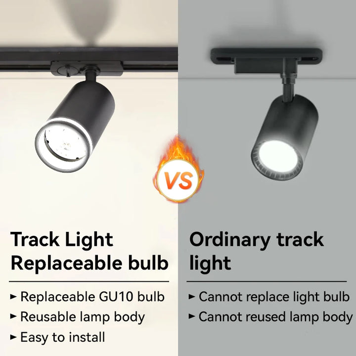 This lamp track light uses a GU10 bulb installation, which can be replaced with your favorite color temperature and wattage. -
