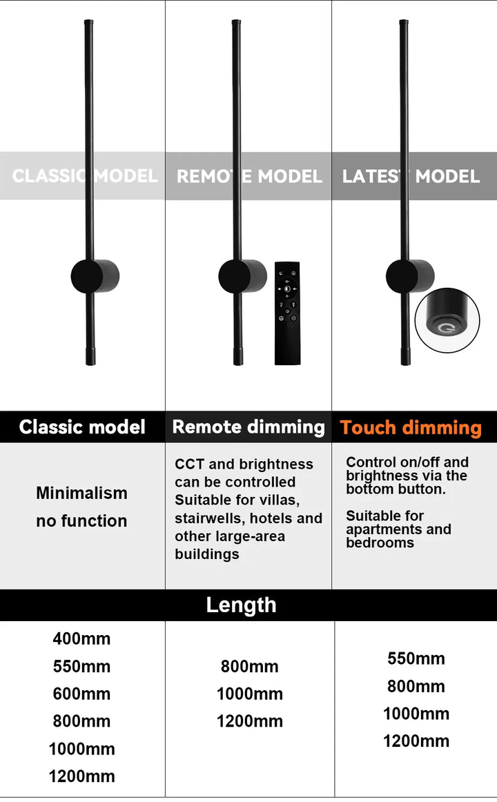 (PS: Only the 800/1000/1200mm models have remote control functionality; 400/550/600mm models do not include remote control.)
