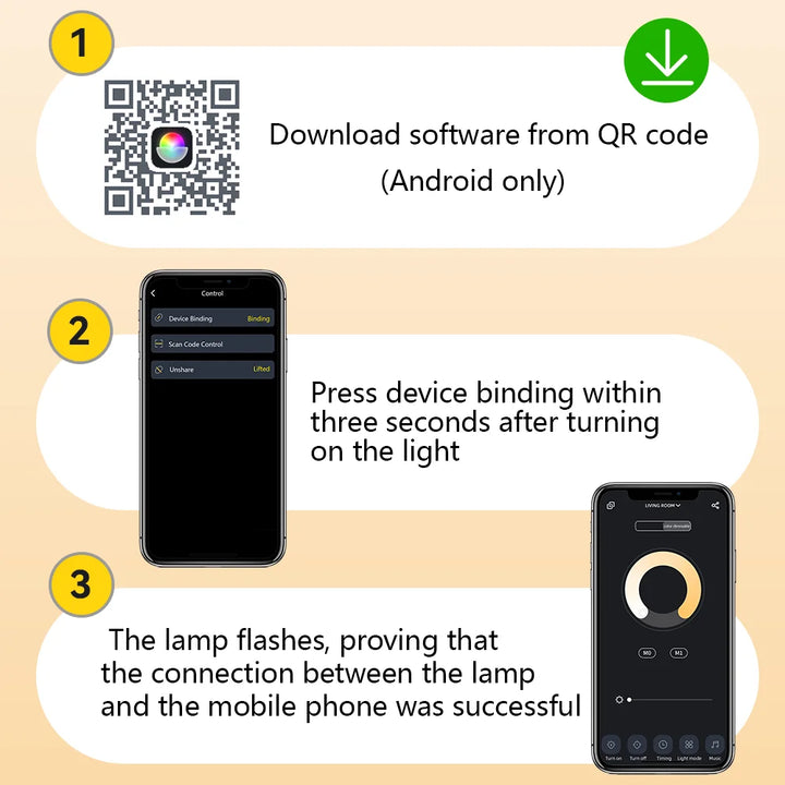 Confirmation: The lamp will flash to indicate a successful connection between the lamp and the mobile phone.
