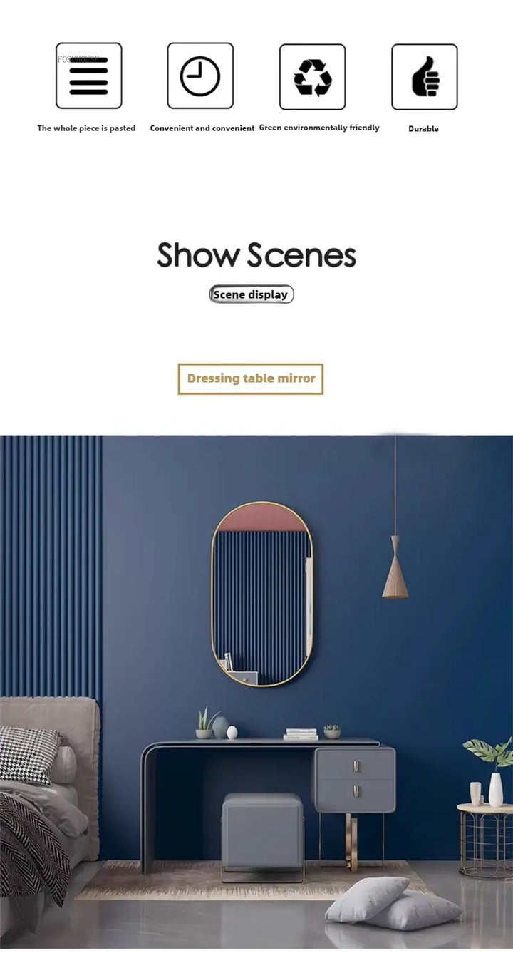 With Black Gold Frame – Light Luxury Dressing Mirror for Bathroom or Toilet