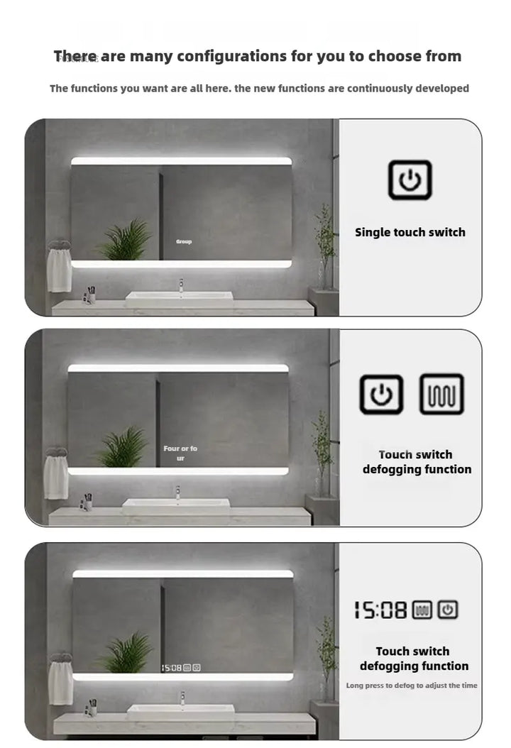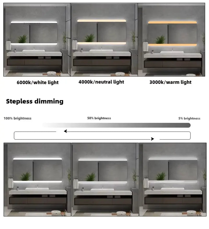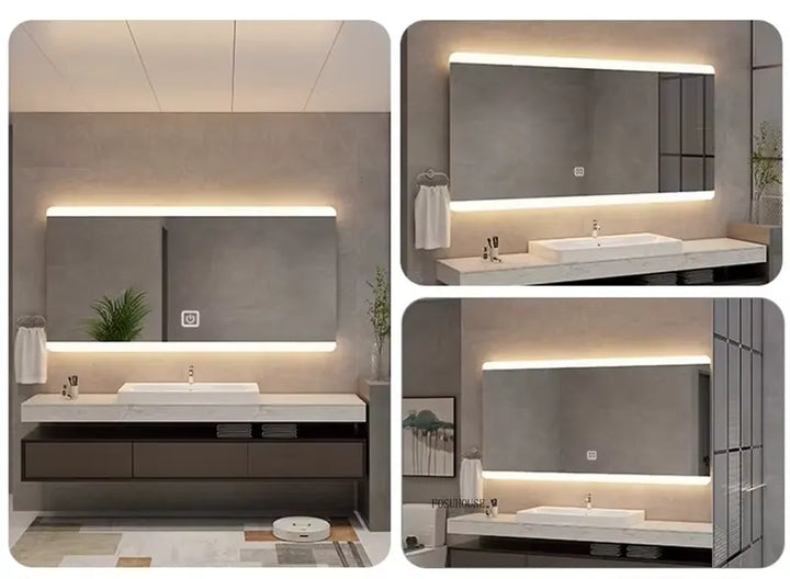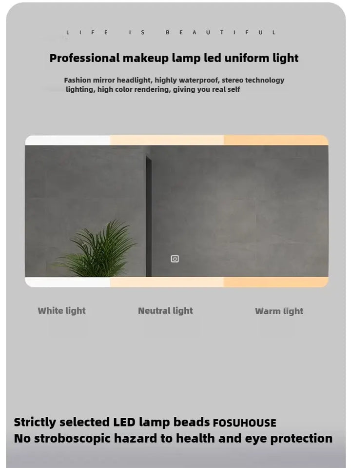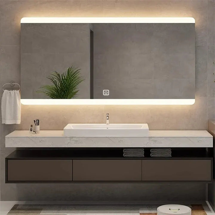 Modern Wall-mounted Smart Bath Mirrors Toilet Designer Anti-fog Washstand Mirror with LED Light Light Luxury Dressing Mirror