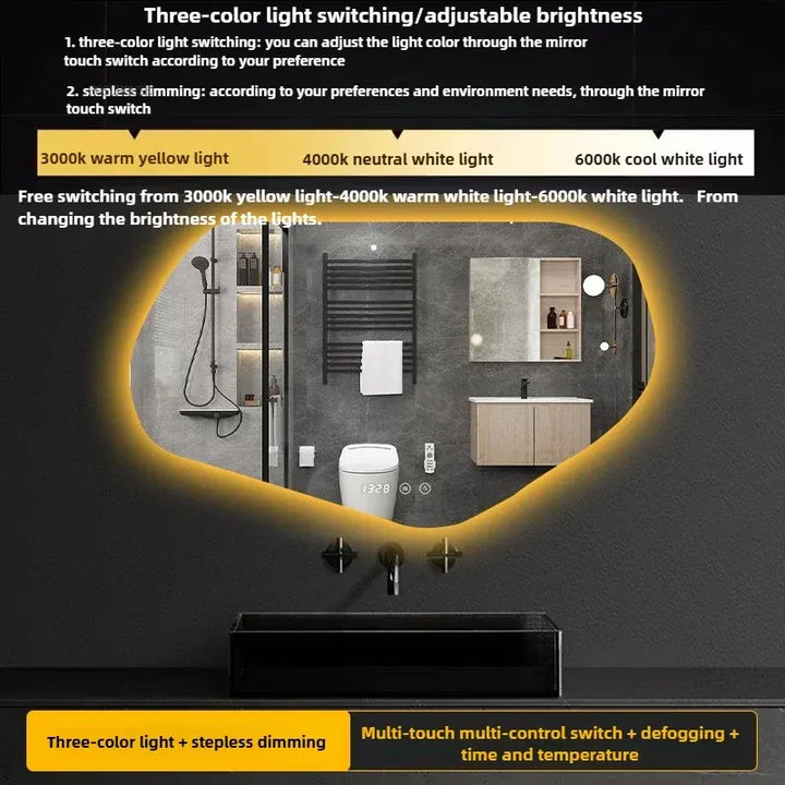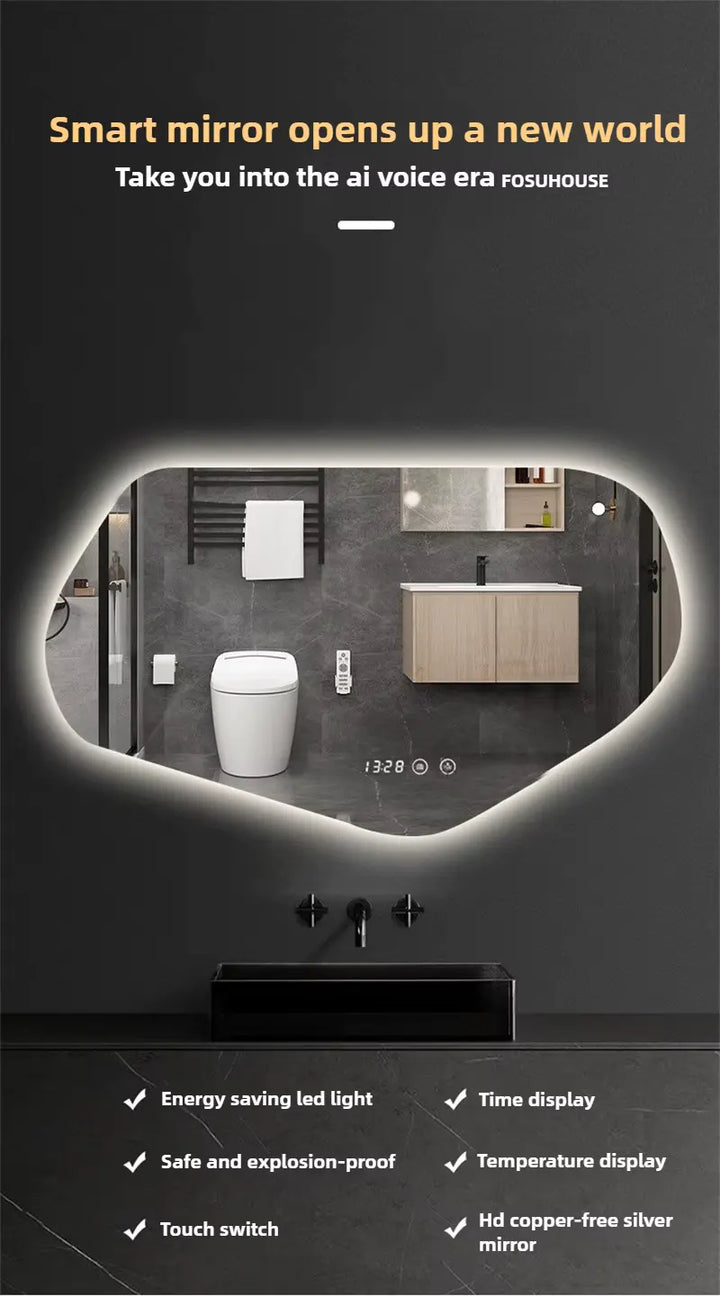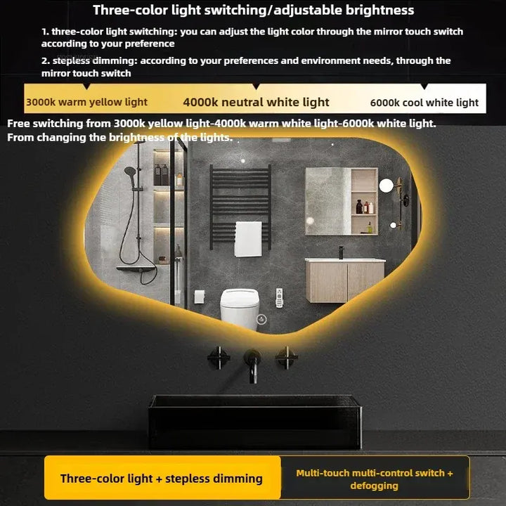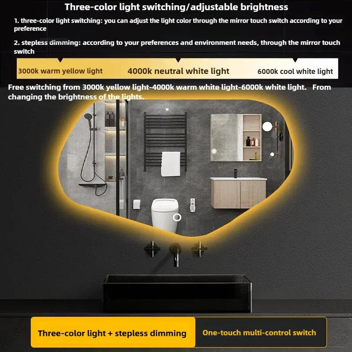 Modern Special-shaped Smart Bathroom Mirrors Home Toilet Bath Mirrors Minimalist Creative Irregular Vanity Mirror with LED Light