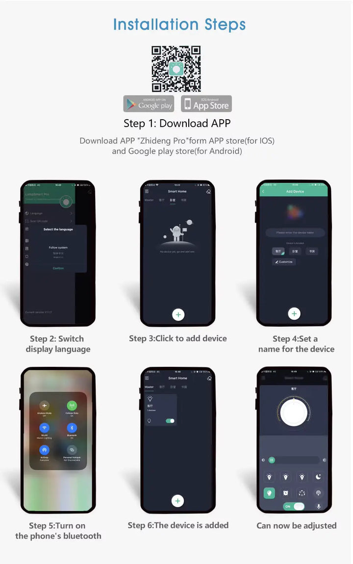 Adjust the lighting intensity with ease. Whether you're looking for a bright workspace or a cozy atmosphere, simply tap your smartphone to set the perfect lighting for your bedroom or living room.
