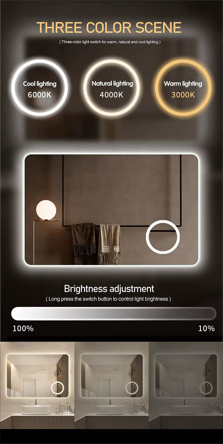 Lighting: Three color LED lighting (Warm, Neutral, Cool)